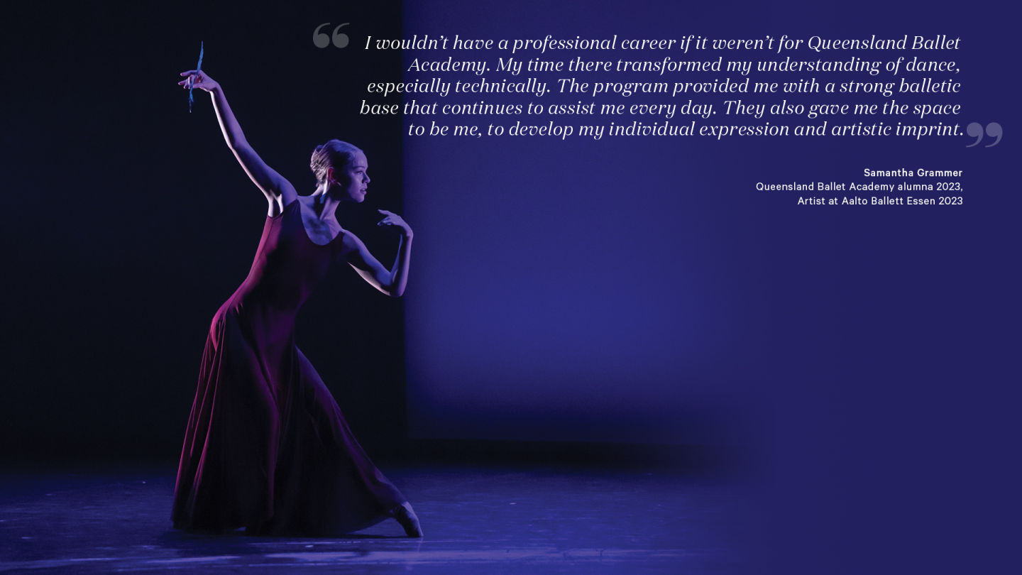 Queensland Ballet Academy programs are designed with a focus on progression from foundational training through to career employment. Our students graduate with the personal integrity, and the technical and artistic maturity required to successfully pursue careers in Australia and internationally.
